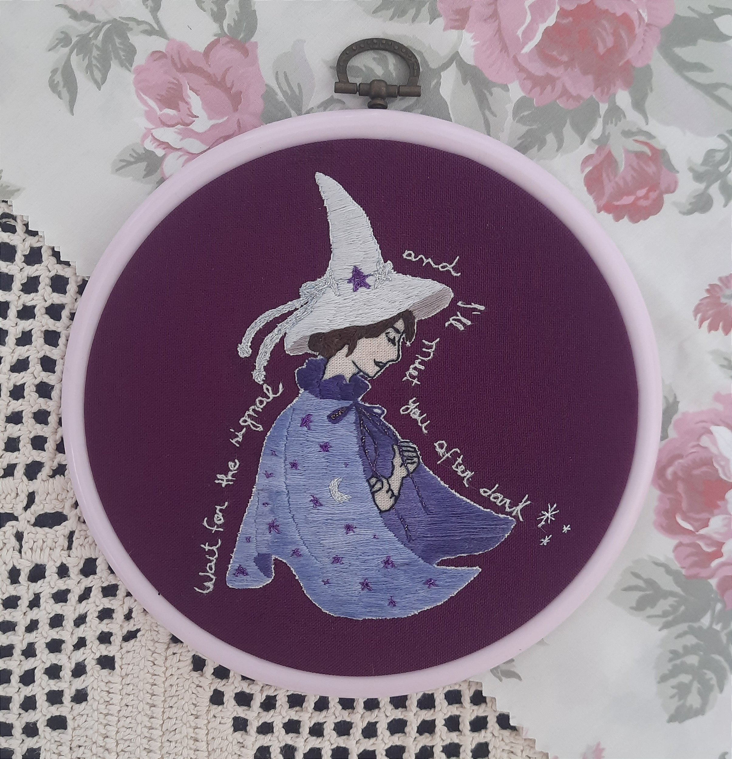 "Wait for the signal and I'll meet you after dark". Espere pelo sinal e eu te encontrarei depois da escuridão. Bordado especial para as bruxonas, fãs de Taylor Swift (ou não).